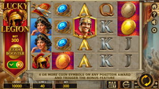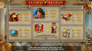 The fearless Legionnaire symbol is the Wild, that appears only on reels 2, 3, and 4, expanding to cover the reel and substituting for all regular symbols except Coins to secure impressive wins.